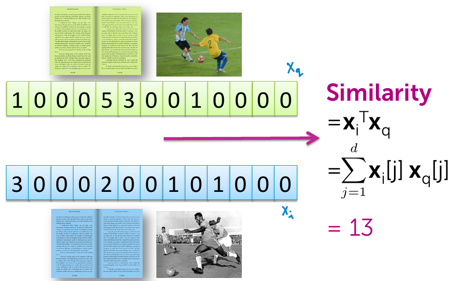 \[ \frac{\mathbf{x}_i^{T}\mathbf{x}_q}{\|x_i\|\|x_q\|} \]