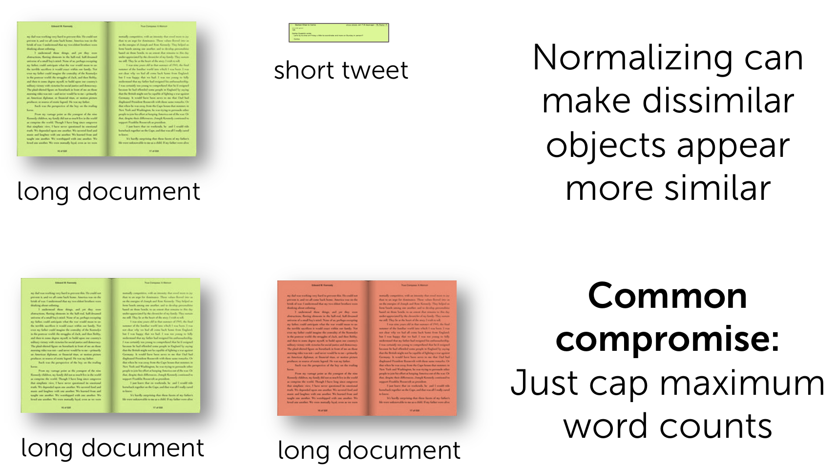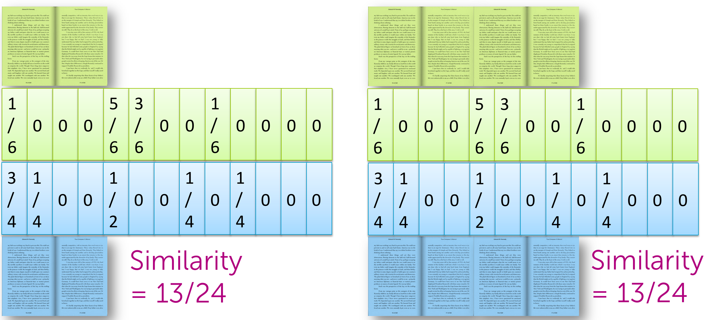 \[ \textit{Inverse doc frequency} = \log\frac{\textit{#docs}}{1 + \textit{#docs using the word}} \]
